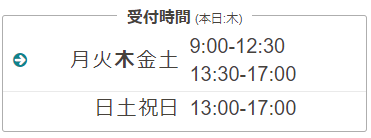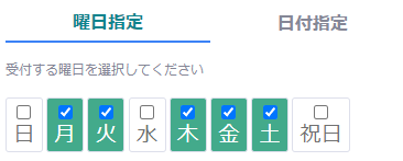 曜日ごとに異なる受付時間を設定できます。例えば、平日と週末で営業時間が異なる場合などに便利です。
