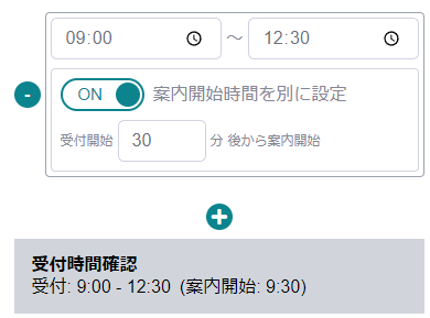 実際の受付開始時間よりも前に案内を開始する時間を別途設定できます。これにより、お客様が事前に来店する準備ができ、待ち時間の軽減に貢献します。